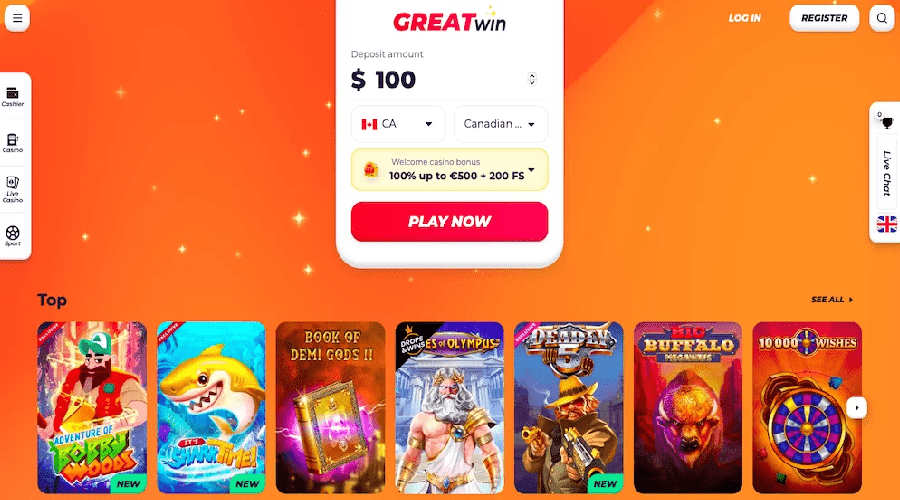 GreatWin's wide selection of games is one of its distinguishing features. Video slots, traditional fruit machines, jackpot and megaways-style slots, blackjack, roulette, baccarat, poker variations, keno, scratch cards, instant-win games, and a full live-dealer lobby are just a few of the thousands of games available on the platform. Users that like human-dealer connection, high-quality streaming gameplay, and a social gaming atmosphere that simulated tables don't always offer may find the live casino section very appealing. The website runs nicely on both desktop and mobile devices, and the option to filter games by category or provider makes it easier to traverse the wide choices.